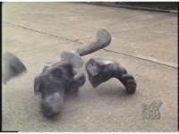1950s Gumby technology shows pieces of clay come together into a ball, that then forms into pair of Putties. |