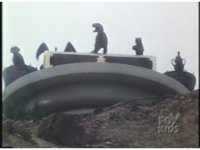 Fades to black. Trims extra Putties appearing at end. A few more shots following this were cut, due to Baboo & Squatt having Putties build statue. |