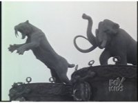 Sabertooth Tiger and Mastodon statues in static shot. |