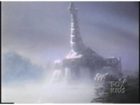 Close, slow pan up the main tower on Rita's Lunar Palace, stopping at the spinning globe. |