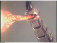 Continued from prior shot, Titanus finishes firing first fireball, then coughs up two more. |