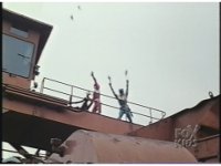 Zoom out as the four Rangers fall and roll together, sort of a forced regrouping. |
