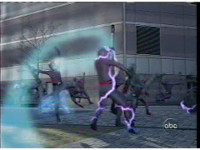 All six Rangers Savage Slash the energy slice forth, it strikes the Org Heart, which flares brightly, and erupts into an explosion of pure light, that soon fades away, leaving no trace of anything Org behind it. The Rangers then make celebratory gestures. |