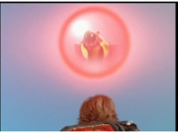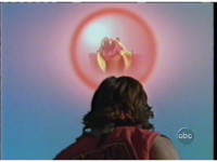 Continued, Master Org's body, bathed in white light, disintegrates, leaving only the Org Heart. |