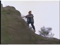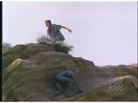 Billy climbs up to top of mountain, as Putty stalks him from below. |