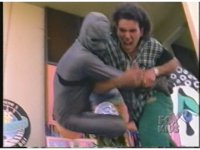 Prior source shots of pair writhing in foam cut. |