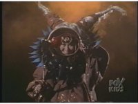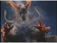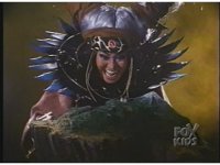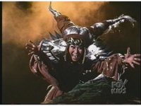Close on altar as skullhead gets blue electricity surging into it, causing eyes to glow the full spectrum of Ranger colors. |