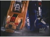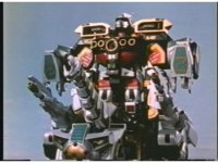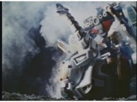Upward shot of Ultrazord, panning from its left side over to its right. |