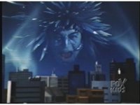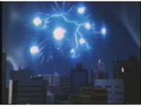 Lokar bursts with a sparking flash, leaving him crackling with blue electricity in agony. He finally reverts back to the flaming red ball and shoots into space again. |