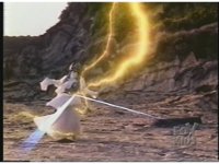 Knasty Knight in zoom out, fires several energy beams at Black Ranger, sparking on him and around him. |