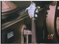 Zoom out from Rita as she stands before her bowing henchmonsters, hitting Squatt with wand, then Baboo. |