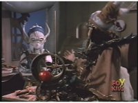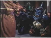 Rita stands before her bowing henchmonsters, hitting Squatt with wand, then Baboo. |