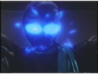 Close on Dark Warrior as his eyes flash with bluish energy. |
