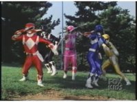 Zoom out as Dark Warrior rolls back up, and other four Rangers regroup around Pink in facing him. |