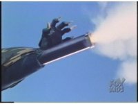 Zoom in on cockpit as Red Ranger raises fist up, then forth, then grips control. |