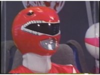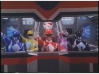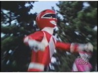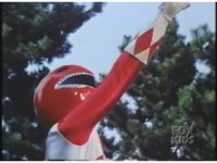 Zoom in on Red Ranger as he turns to our left and raises right hand to sky. |