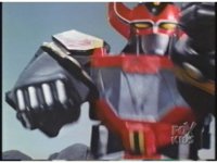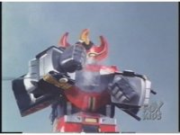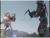 Dark Warrior rushes up and katana strikes Megazord, but gets blocked and pushed aside. He turns, high kicks, it's blocked, slashes, it's dodged, but finally sparkily slashes Megazord while rushing past it. Dark Warrior then get blade punched, before striking again, Megazord grabbing with both hands before up-punching, sending katana flying. |
