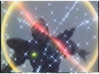 Dark Warrior gets slashed by sword, which causes him to leap off the ground, sparks and pulses of energy are released, until he hits the ground, camera zooming out to show him glow with yellow energy before exploding massively, which turns into an added burst of sparks and a fireball, leaving only lingering smoke with red electricity. |