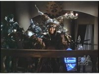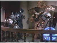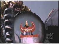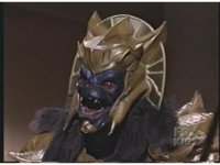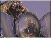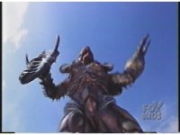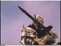 Close on US Goldar as he kind of salutes with sword while talking quick. |