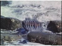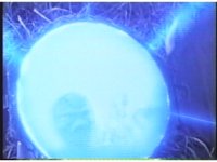 Close on Mirror of Destruction as it opens and unleashes blue energy gleam in hazy shot. |