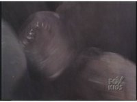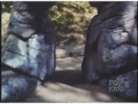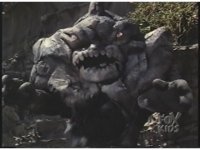 Rita, back to us, scolds Baboo, who shakes head rapidly and holds hands in front of face shaking them in fear, responding to her. Squatt, digging in his right ear, is then jabbed by Rita's wand when she turns her attention to him, poking him in stomach, before doing the same to Baboo, leading to them embracing in fear. Rita does a few more arm gestures as the pair remain hugging and shivering together. |