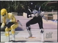 Yellow Ranger drops while grabbing Putty's arm, sending it rolling off. She gets up, punches another Putty, then grabs its arm and flips it over before pounding fist into its chest. |