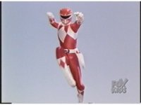 Close up of Red Ranger, posing, crossing arms, then reaching out. |