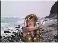 Zoom out from Scorpina as she thrusts boomerang forth, sending Putties ahead of her as Rockstar hangs back, all at beach club. |