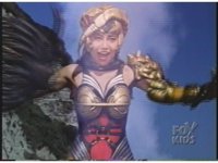 Trimmed heavily to reduce her dialogue. Unfortunately cuts gag of Baboo looking in 'scope and getting knocked away by Goldar. |