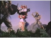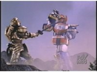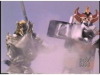 Goldar sparkily slashes Megazord, tries to stab into it but is dodged, turns around, gets sword blocked, and finally sparkily kicks Megazord |