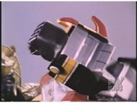 Megazord breaks out of Goldar's grip, causing him to spin around in front of it. |
