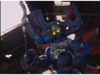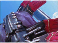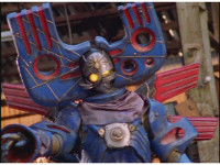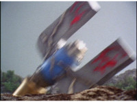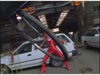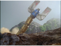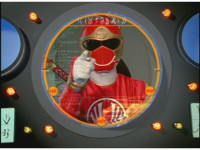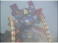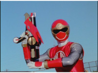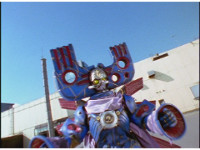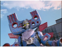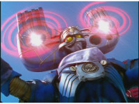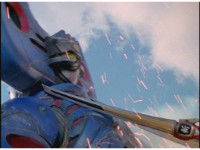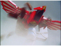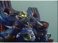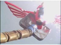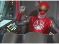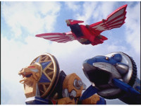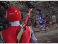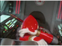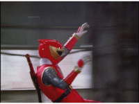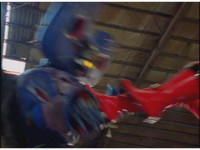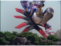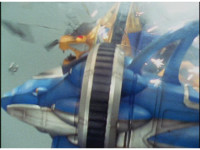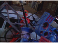 A magnet rod surfaces from underground, attaching to Dolphinzord explosively, jolting Blue about, Red reacting, only to have another magnet rod pop up and strike his Hawkzord, jerking him about. Mad Magnet is revealed to have extended his arms, the ends of which are the rods attached to the two Zords, shaking Red & Blue in their cockpits. |