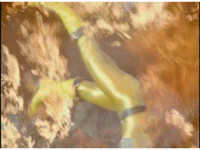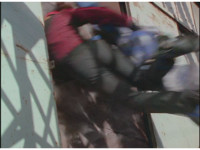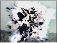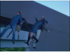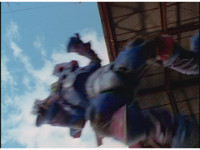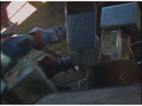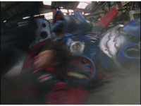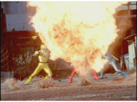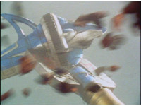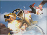 Cuts before Blue is knocked forth; cuts follow-ups of Yellow watching Zords bursting. |