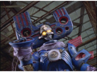 Upward shot of the Storm Megazord on Lothor's viewscreen. |
