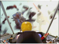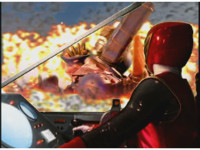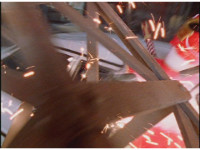 Cuts follow-up zoom in on Red in flaming cockpit. |