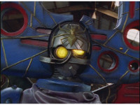 Pan down as Mad Magnet expands into being, his eye gleaming, close-ups of his bodily parts quickly flash, and the camera then pushes in on him as he talks. |