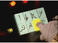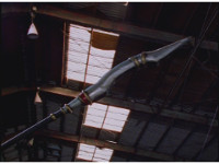 Cuts follow-ups of spear being lowered, then sparkily blocked by shurikens. |