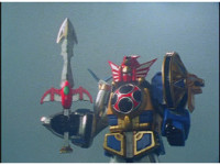 Colored energy combines in the middle of Storm Megazord, the Rangers then nod-talk, before Power Sphere 01 pops out of Storm Megazord's chest, hatches and expands into the Serpent Sword. |