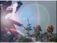 The three Ninja Storm Zords race alongside each other, Lion then roaring and spinning his neck rim wheel. |