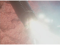 Trimmed heavily; cuts before water bursts in on him; This whole sequence was pushed ahead of source. |