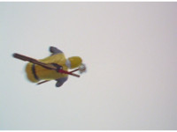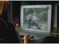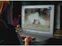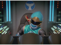 On the cockpit console, zoom in on the mini-portal as a new Power Disc appears, which Yellow picks up. |