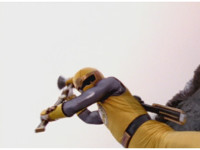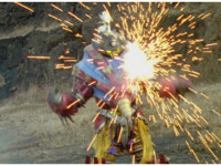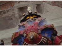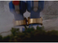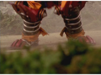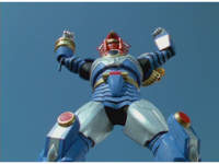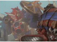 Cuts follow-up of Megazord posing with Hammer. |
