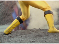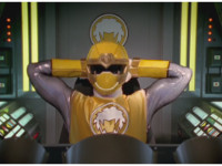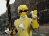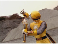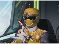The Rangers reach forth in their cockpits, zoom in on Yellow. |