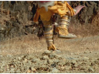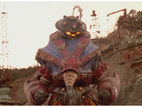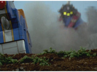 Cuts before he does neck roll; cuts follow-ups of Terramole watching Megazord slowly walking forth. |