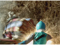 Cuts follow-ups of pair getting beaten by monster, then they use shurikens on him to no avail. |