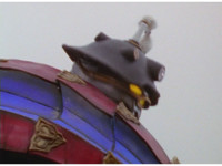A ferris wheel and roller coaster transforms into the Lionzord, which then stomps. |