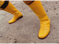 Yellow's boots leap up. |