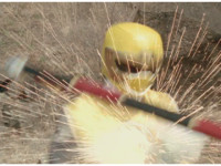 Shot 4 is recycled, but runs fully; shots 4 & 5 have electricity added so they aren't causing the Rangers harm by running through them but by frying them; cuts before Rangers explode. |