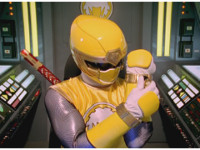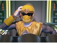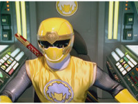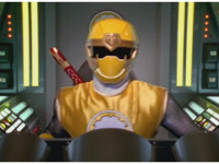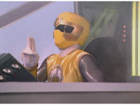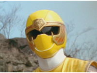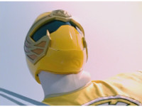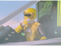 Thunder Megazord punches Storm Megazord sparkily in the chest, causing it to stagger back. Yellow raises his fist and removes his disc from his Morpher. |
