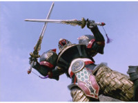 Colored energy combines in the middle of Storm Megazord, before Power Sphere 01 pops out of Storm Megazord's chest, hatches and expands into the Serpent Sword. |